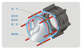 叠螺污泥脱水机的主体是由多重固定环和游动环构成,螺旋轴贯穿其中形成的过滤装置。前段为浓缩部,后段为脱水部,将污泥的浓缩和压榨脱水工作在一筒内完成,以独特微妙的滤体模式取代了传统的滤布和离心的过滤方式。
